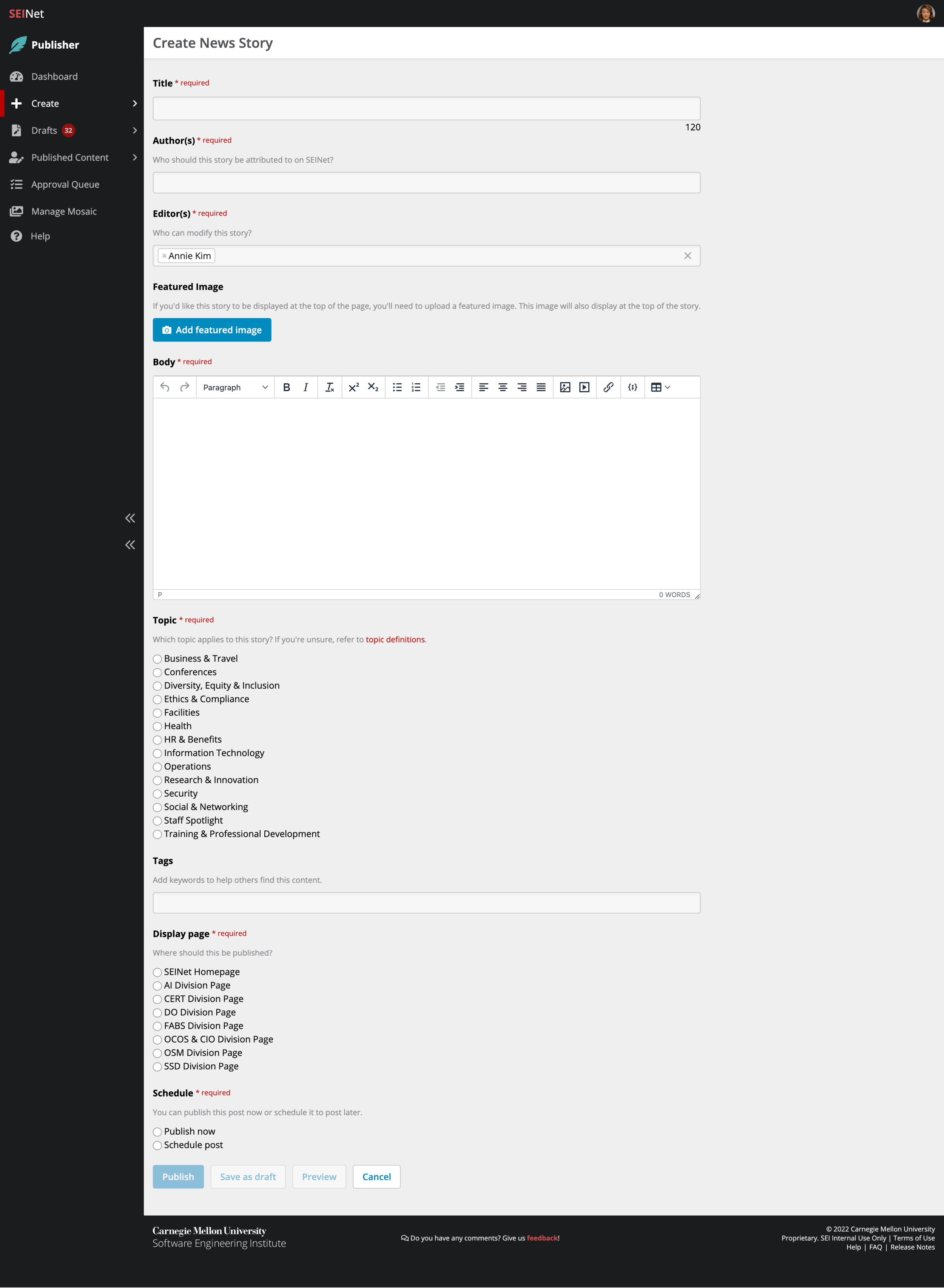 For divisional news, a.k.a. news that is relevant to specific divisions within the SEI: